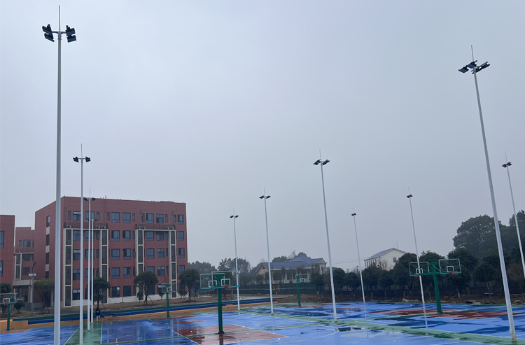 湖南揽月科技有限公司案例:长沙市唯上商务科技学校篮球场高杆灯案例实拍,高杆灯厂家直销,量大从优,欢迎广大用户来电咨询。